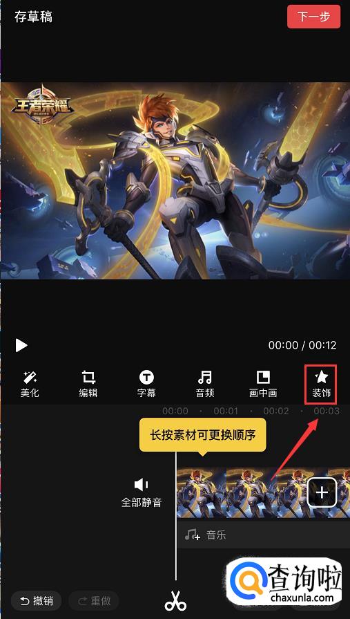 接着,在上方的工具栏中选择【装饰】。