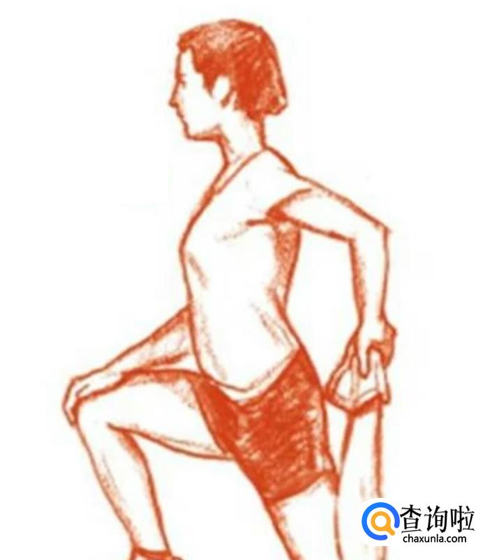 交叉双脚,伸直后腿的膝盖,将身体重心放在前脚,将身体前倾,左右脚交替进行。