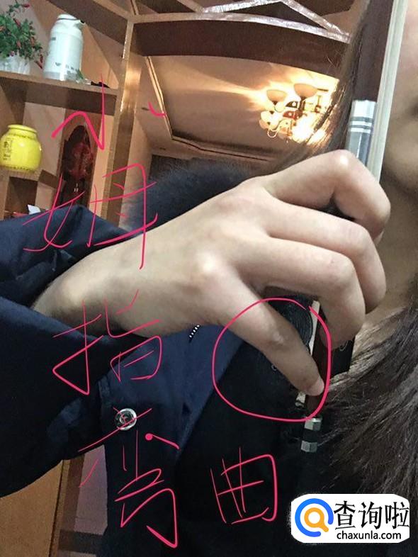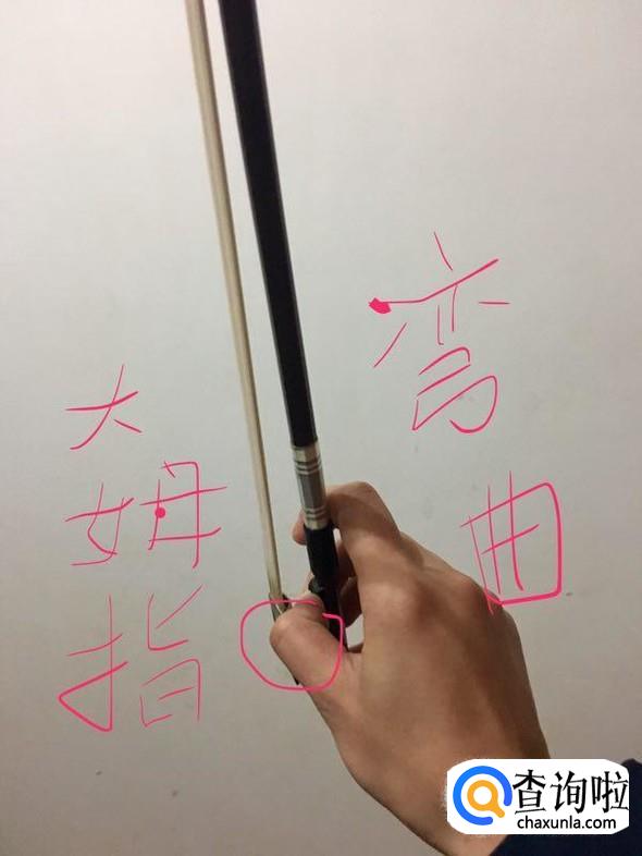 握弓子的时候第一步要大拇指弯曲,先掐住弓子,如下图所示。