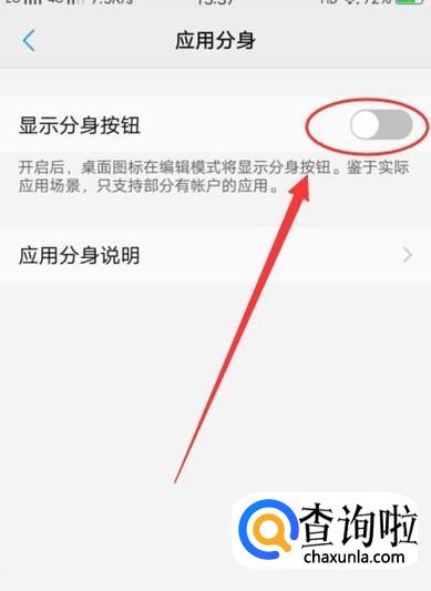 进入之后,将应用分身按键打开,如图所示。