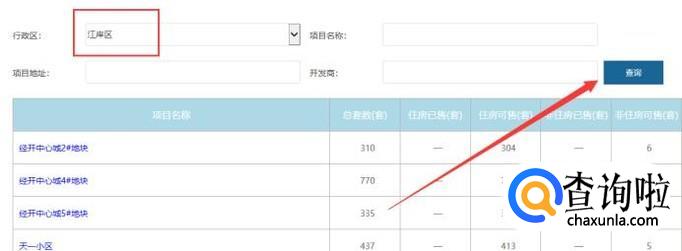 进入之后选择需要查询的行政区,在这以“江岸区”为例,点击查询即可。