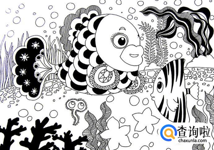 黑白线描画《美丽的鱼儿》的作画步骤。感兴趣的小伙伴们快来了解一下吧。