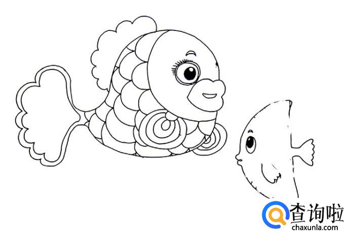 继续画小鱼的大概轮廓,小鱼可以画其他品种的,这样画面会丰富一些。