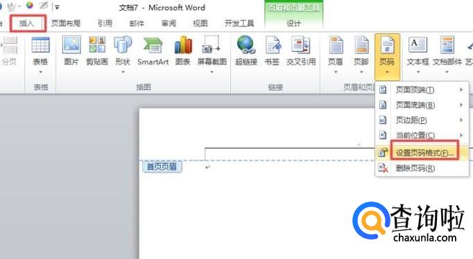 之后我们点击插入,点击页码的下拉箭头,弹出的界面,我们点击设置页码格式;