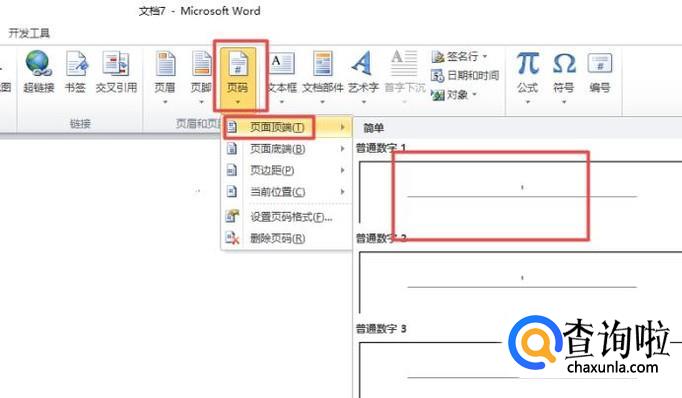 之后我们点击页码的下拉箭头,然后点击页面顶端,之后点击选择第一个;