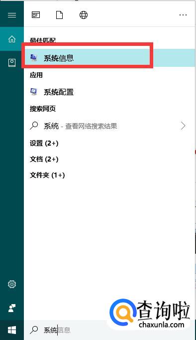在搜索框中输入“系统”后,从搜索结果中选择“系统信息”。