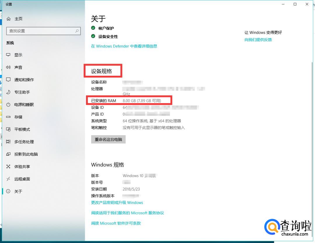 在设备规格下的详情中,就可以看到你的电脑还有多少内存可用。