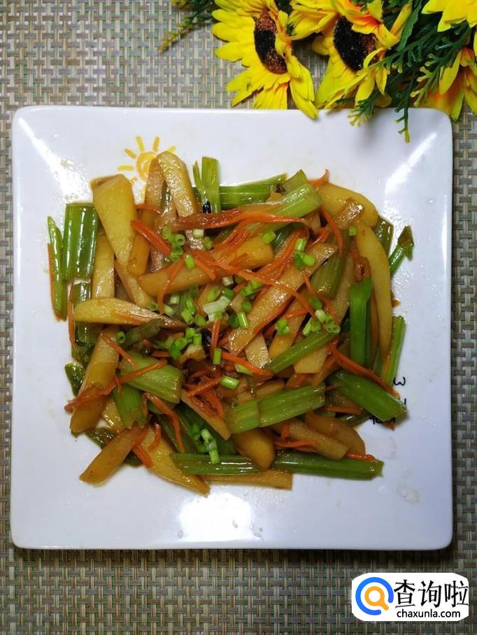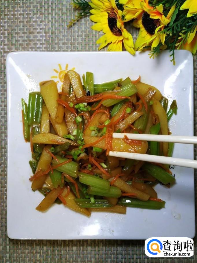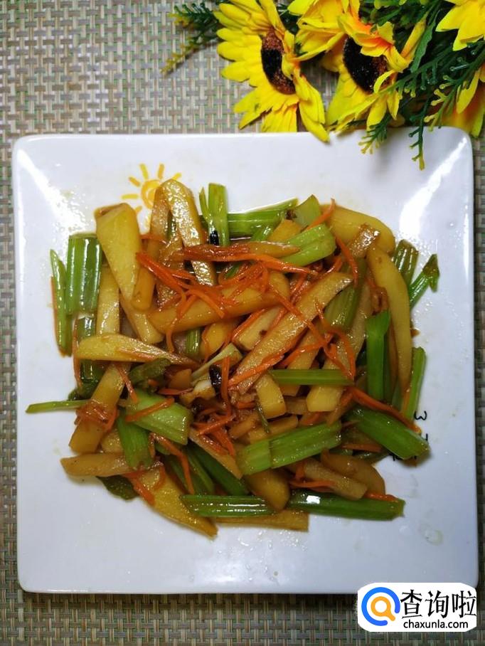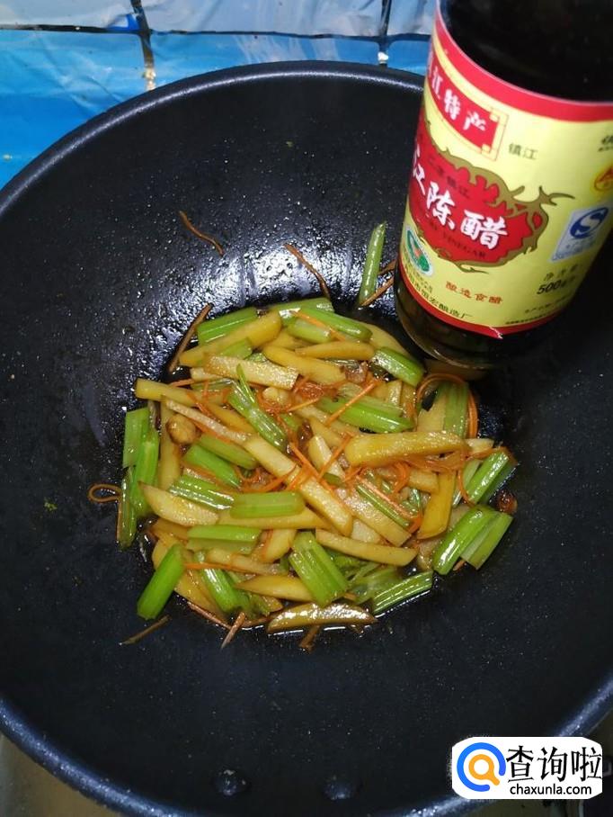 芹菜适量,土豆适量,胡萝卜适量,冰糖适量,蒜适量,盐适量,鸡精适量,五香粉适量,生抽适量,陈醋适量。