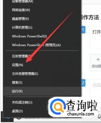 打开电脑,右击Windows按键,选择设置,如图所示。