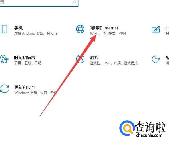 进入之后,点击“网络和Internet”,进入下一页面,如图所示。