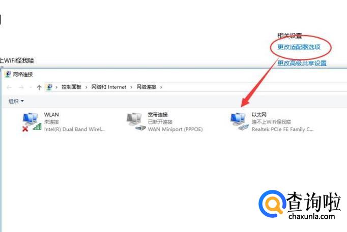进入之后,点击“更改适配器选项”可以更改网络的连接状态,如图所示。
