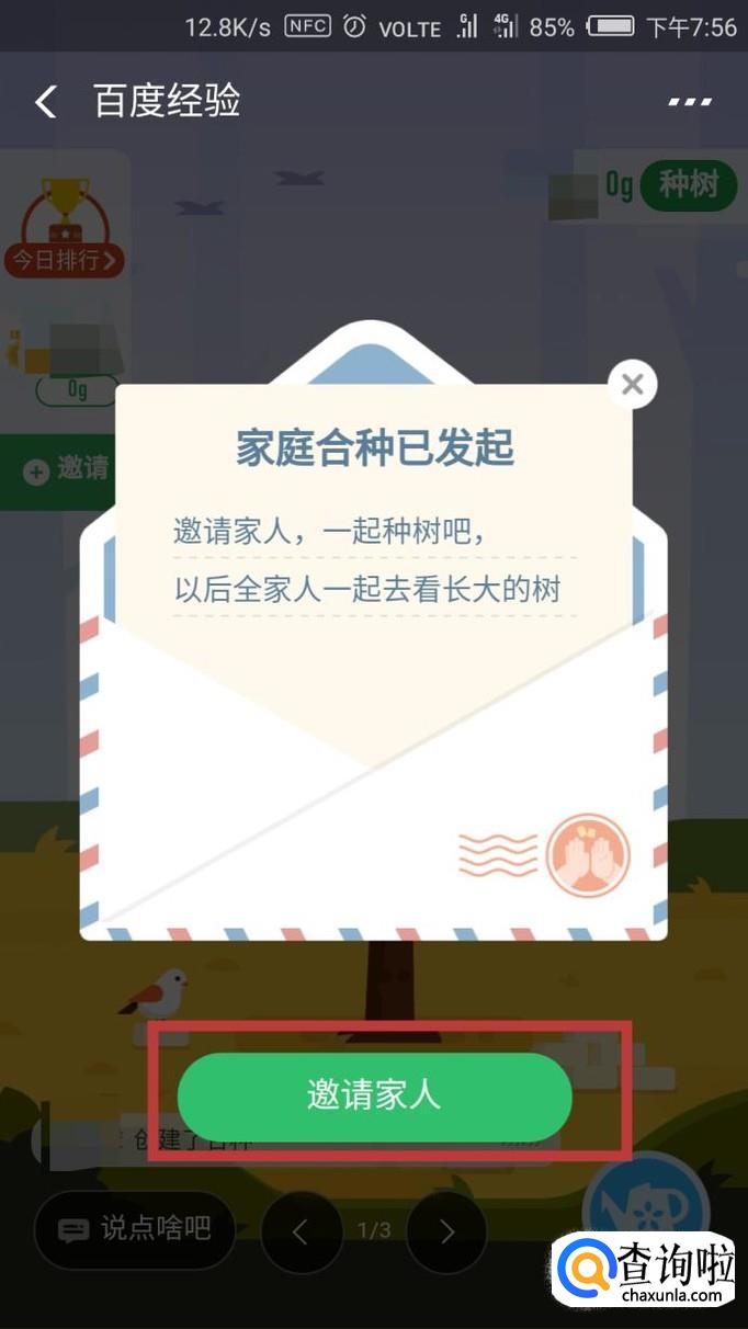 这里我选择了家庭树,发起合种后,点击【邀请家人】邀请他人一起参加合种就可以了。