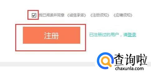填好信息后,勾选页面下方的小方框,然后点击"注册"。