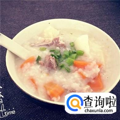 我们将大米煮开花状态,然后放入切成丁的胡萝卜和淮山。煮至15分钟以后,加入调料。这款粥可以活血明目,滋补脾胃。