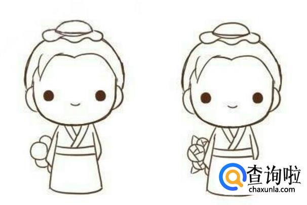 加上头发和头巾,画出眼睛。