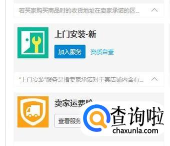 转到另一个页面,在这里点“加入服务”这一项;随即页面即展开着各种的服务。在这里,我们找到:卖家运费险。