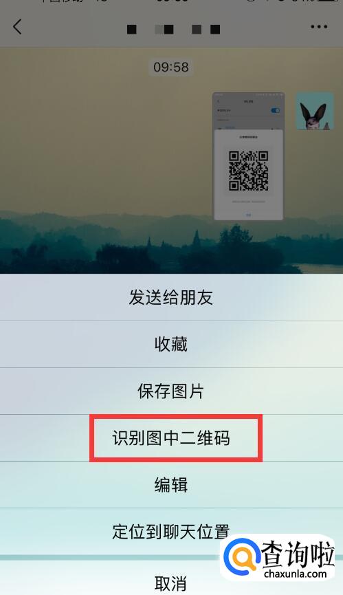 打开微信,将二维码图片分享给朋友。