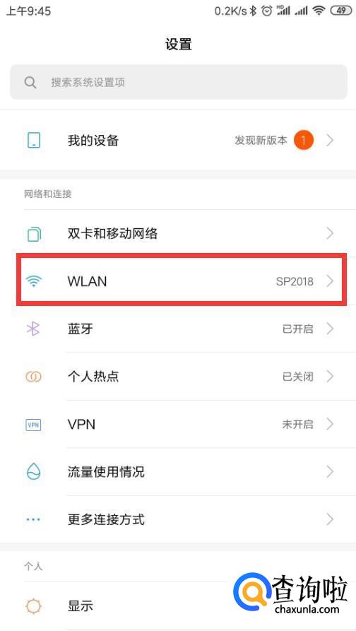 找到手机设置中的WLAN设置,点击进入无线设置。