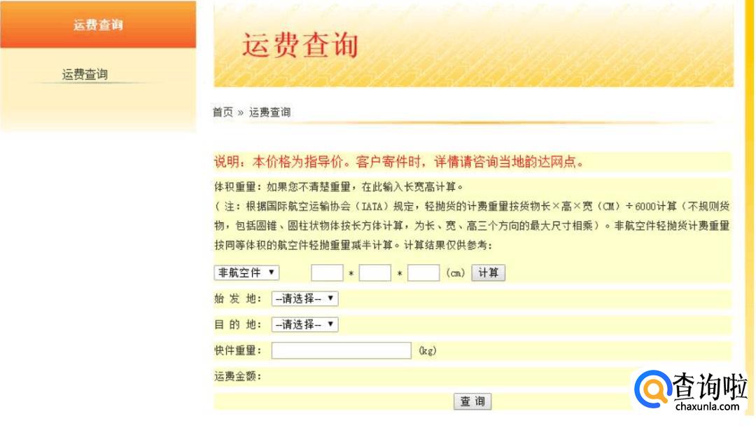 最后,我们还可以进入韵达官网,里面有运费查询系统。