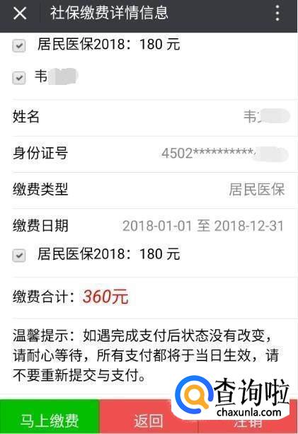 选好之后,点击“马上缴费”,然后点击“立即支付”。看到这个界面,恭喜你,支付成功。