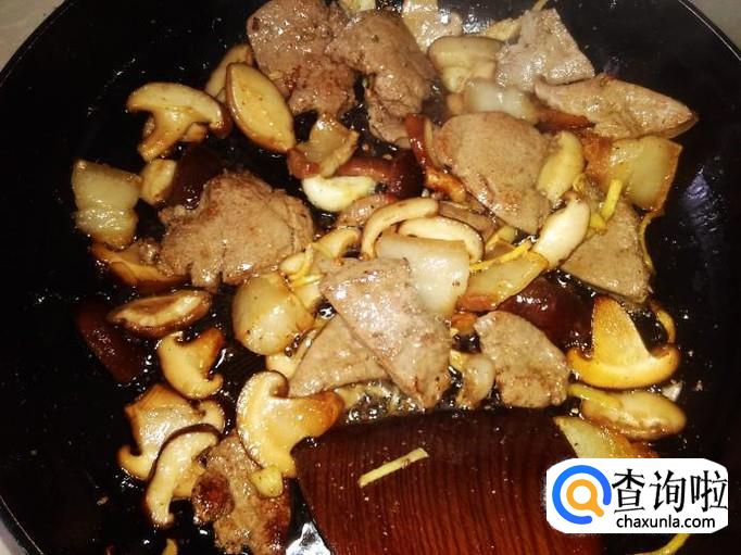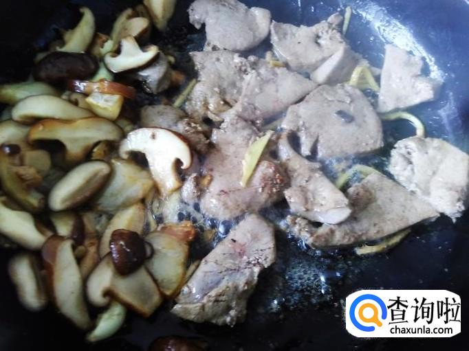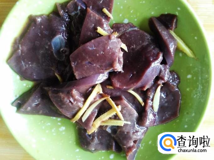 把羊肝清洗干净,然后切成薄片,加适量的盐、姜丝、1勺料酒腌制几分钟,香菇去掉根蒂,清洗干净切成片。