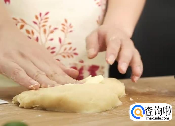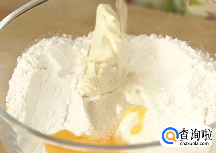 依次加入高筋面粉150克,细砂糖30克,酵母2克,盐2克,奶粉5克,全蛋液28克,水75克,除黄油以外的所有材料一起揉成光滑面团。
