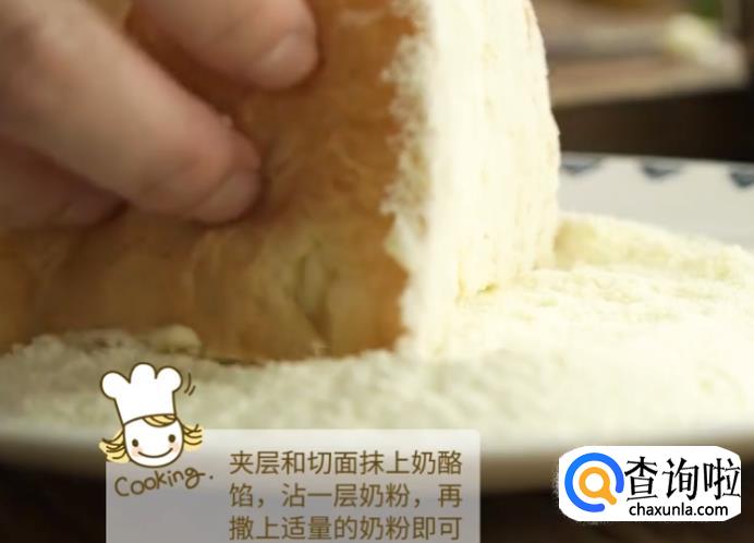 高筋面粉150克,细砂糖30克,酵母2克,盐2克,奶粉5克,全蛋液28克,水75克,奶油奶酪15克,晃悠15克,奶油奶酪80克,糖粉16克,淡奶油28克,奶粉若干