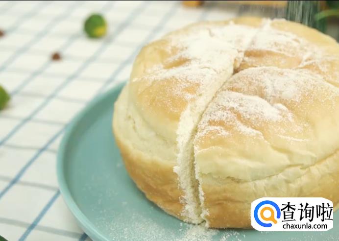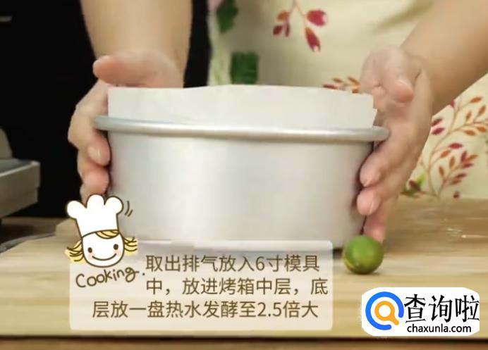 取出排气再滚圆放入6寸模具中,放进烤箱中层,底层放一盘热水发酵至2.5倍大。