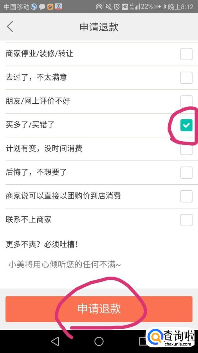 填写申请退款的原因,然后点击申请退款,如图。