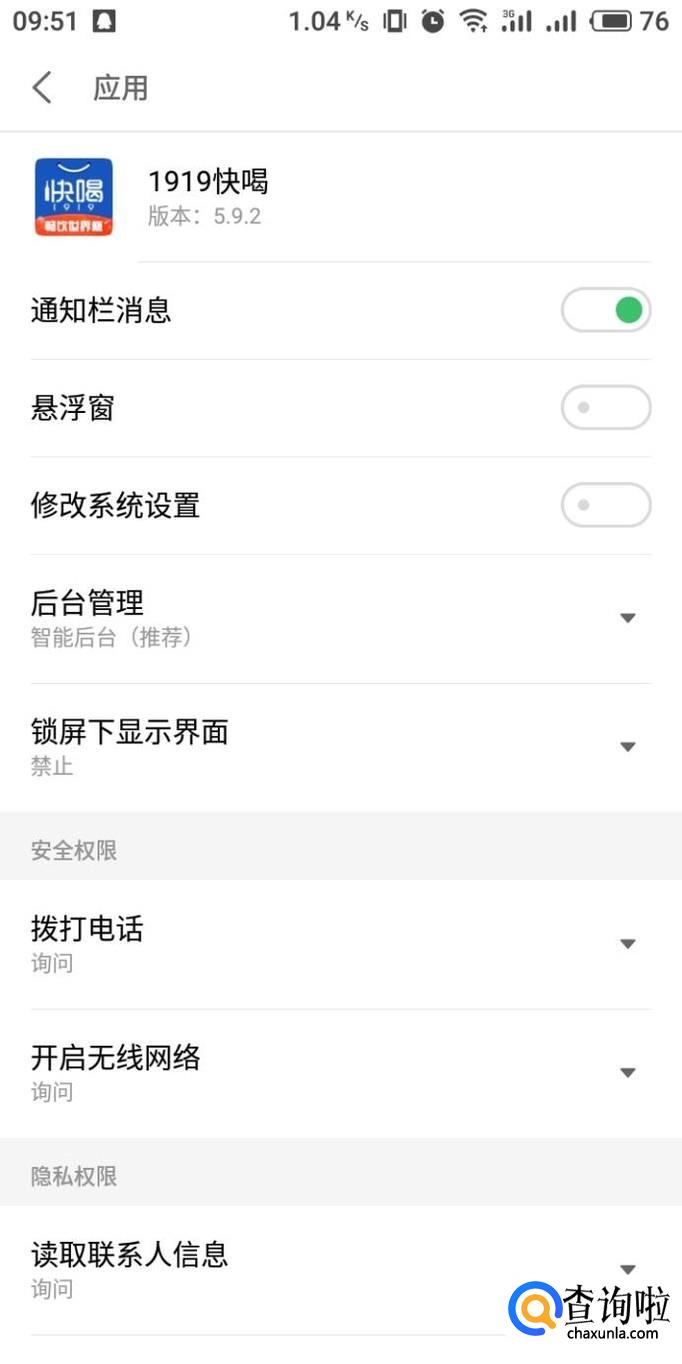 此外,在单个应用的应用权限设置界面中,也能够对通知权限等进行设置。