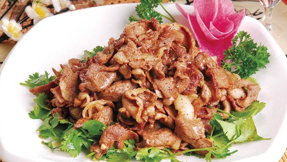 第三步,在锅中放入少许的油烧热至六成后,把羊肉片放入锅中滑开,将原料出水油温降低后取出,油温重新升高之后,再把羊肉放入锅中再次炸一遍,加入孜然辣椒搅拌装盘就可以出锅了。