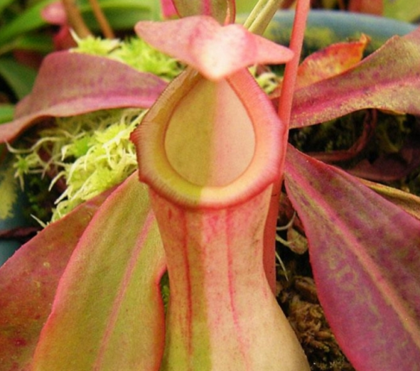 猪笼草是有名的热带食虫植物,主产地是热带亚洲地区。猪笼草拥有一幅独特的吸取营养的器官——捕虫囊,捕虫囊呈圆筒形,下半部稍膨大,因为形状像猪笼,故称猪笼草。在中国的产地海南又被称作雷公壶,意指它像酒壶。这类不从土壤等无机界直接摄取和制造维持生命所需营养物质,而依靠捕捉昆虫等小动物来谋生的植物被称为食虫植物。