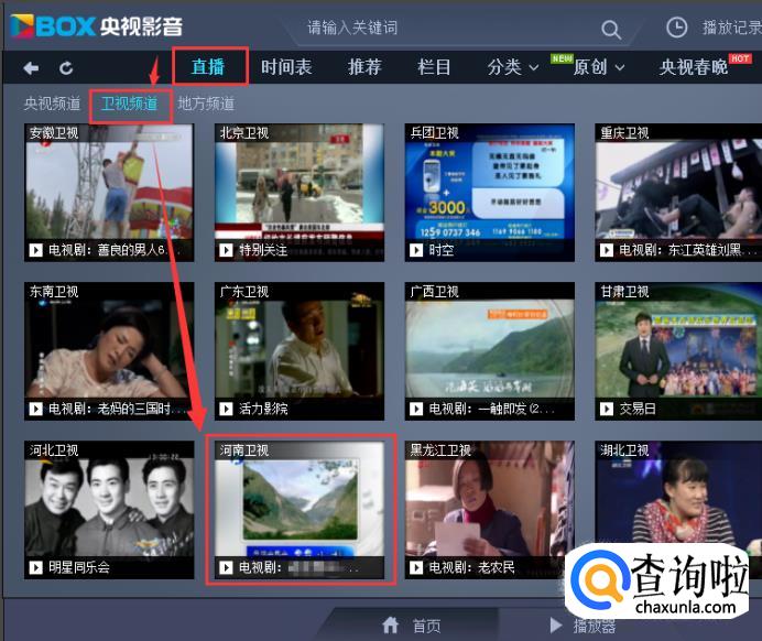 安装完毕之后打开,选择直播,然后选择卫视频道,找到河南卫视进入。