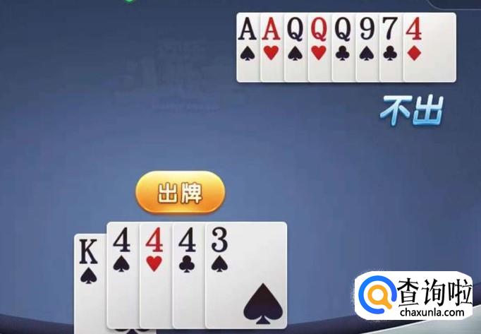 对方出三个Q,但我们报单一个K了,对方牌子里还有单张的7和9。当对方出这二个单牌中的其中一个时,我们的K就能过了。这样就顺利过关了。