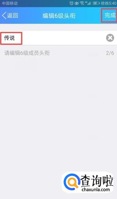 弹出的界面,我们设置群头衔名称,之后点击保存,其他等级依次设置就可以了。