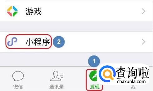 我们需要用到微信小程序,打开微信APP以后,依次点击“发现”-“小程序”,如下图;