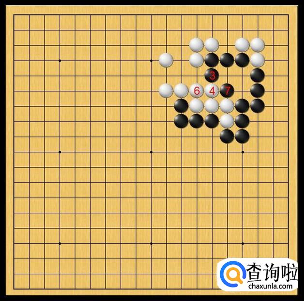 黑棋立刻在黑7处落子就提掉了白三子。现在,黑棋中腹就已经做活了。如图所示。