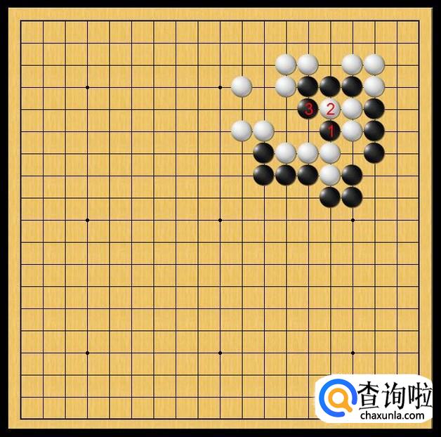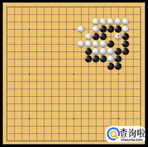 黑方先行,黑方考虑到中腹黑三子势力单薄,于是,黑棋抢先在黑1处落子,企图和外围黑棋配合断掉白二子。如图所示。