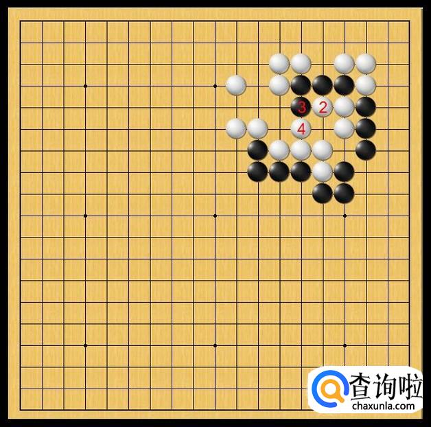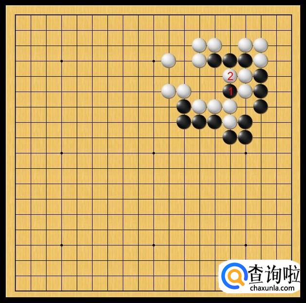 白棋也发现了黑棋的目的,白棋抢先在白2处长,在切断黑1和黑三子的联系的同时,叫吃黑1。如图所示。