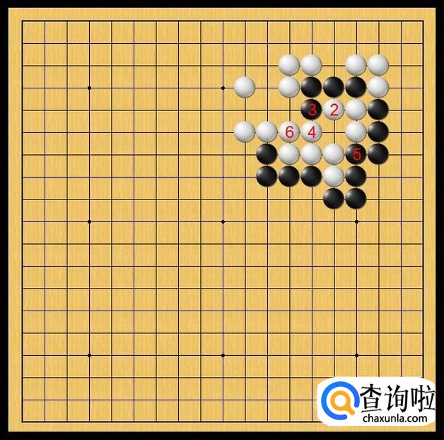 白棋一下傻了眼,如果白棋连上白三子,那更多的白棋会被黑棋打接不归。于是,白棋先在白6处粘。如图所示。