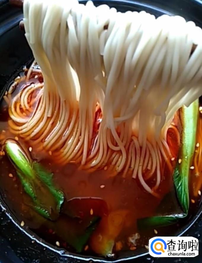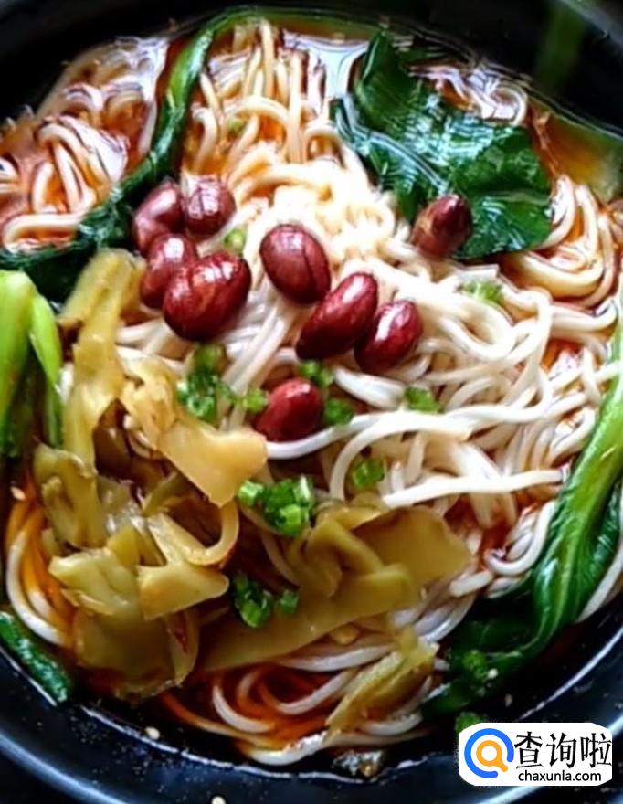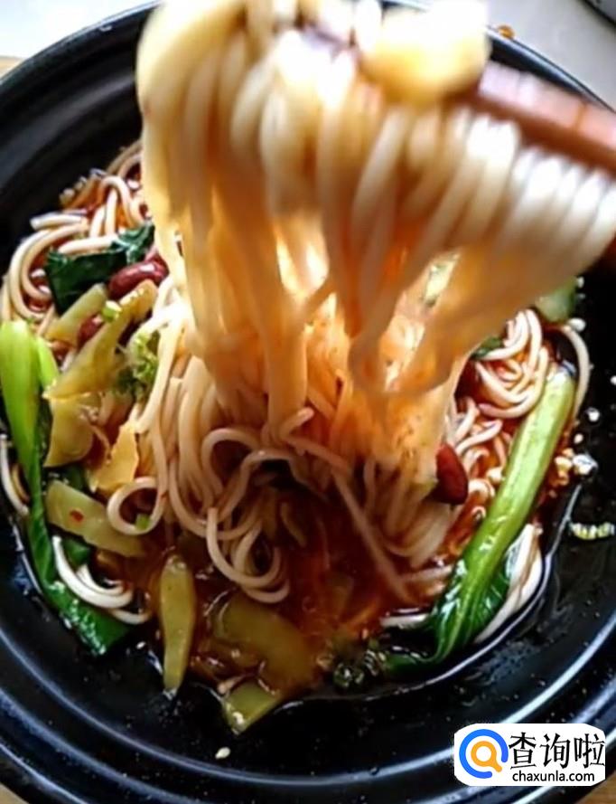最后放入煮好的面条,倒入两勺煮面条的汤,放点榨菜与花生米,搅拌一下,美味的酸甜面就制作完成啦!