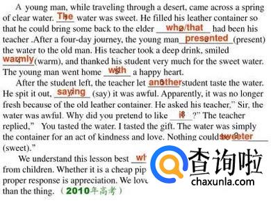 改错和语法填空是如出一辙的,主要就是多做题,多思考起变化。那么接下来就是重头戏阅读理解了。阅读理解的难点就在于寻找答案中的细节问题,文章中会有迷惑字眼。阅读理解的做法就是首先先看题干勾出关键词,看选项区别个选项。然后看文章第一句话和最后一句话猜文章大致讲的什么?然后在文章中找出题干中的关键词,阅读其前后两句话,答案一般会在这三句话里面。一般阅读理解的最后一题是总结性的,所以刚刚阅读的第一句和最后一句一般就是答案。