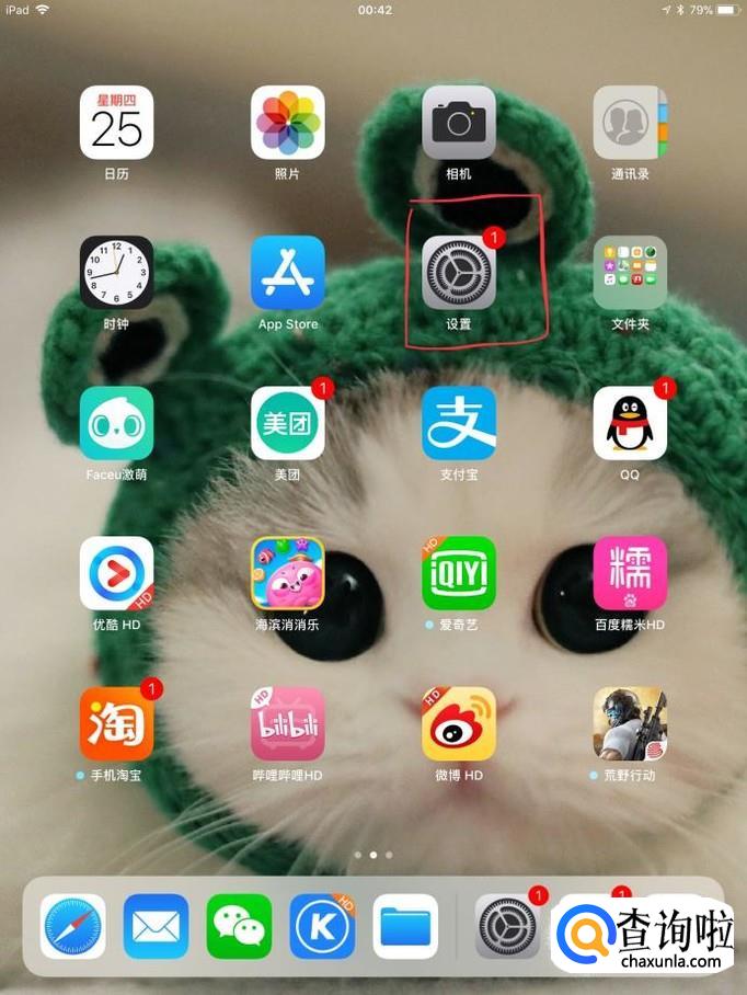 如果你想彻底关闭这个功能的话,可以在ipad上先找到“设置”图标。