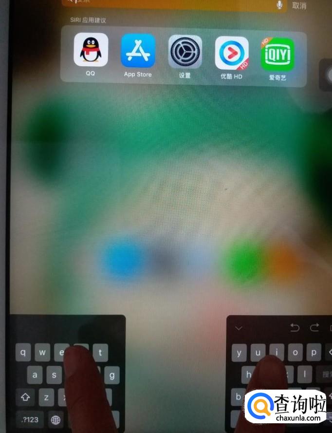 如果键盘分开了,我们只需要用两个指头,在在屏幕上向中间合拢就好了。