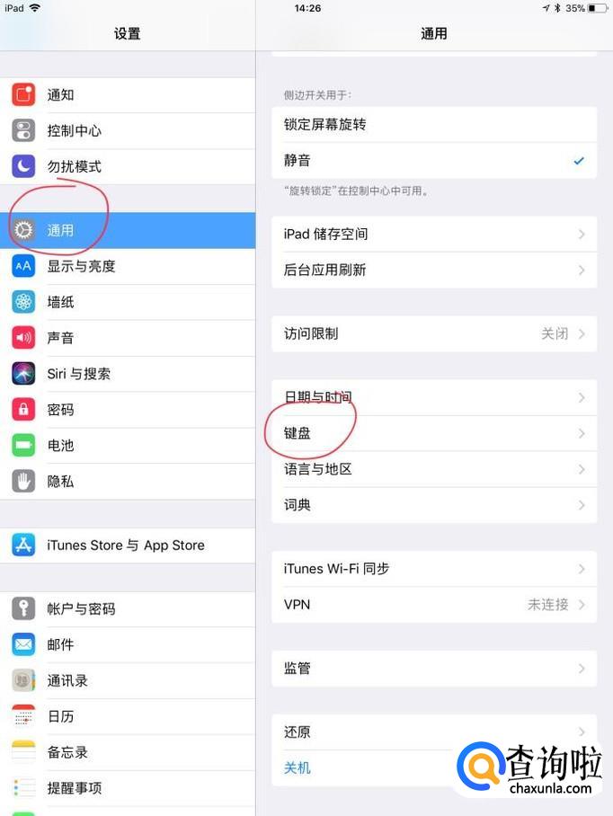 然后找到“通用”--“键盘”。