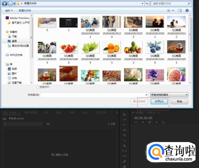 在素材项目栏里面导入想要插入的图片,如下图所示,点击确定。