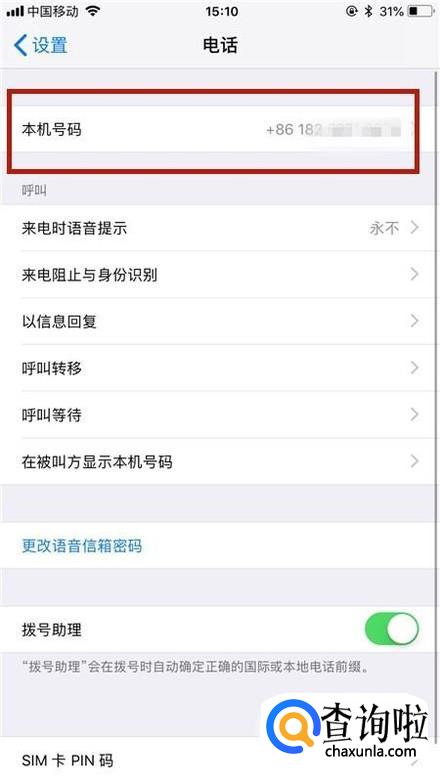 这样操作完成,我们就可以查询到本机的号码了。