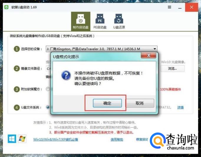 接下来,软件将自动格式化U盘,然后开始系统文件的写入,我们点击“确定”按钮。