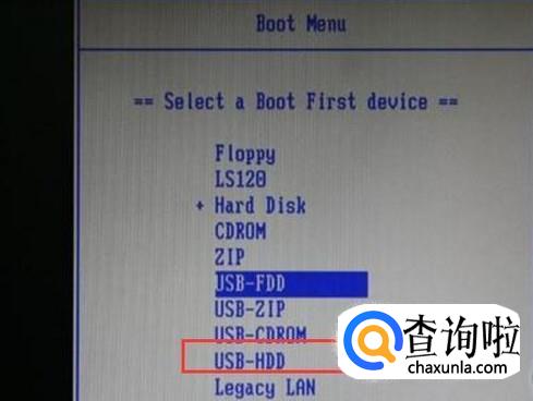 等USB启动盘制作完毕之后,我们重新启动系统,并按下F12键,打开电脑Boot启动菜单,选择USB-HDD启动模式。