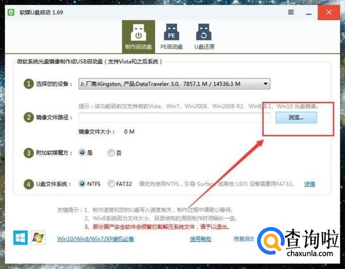 接下来,我们插入U盘设备,然后点击“浏览”按钮,找到系统光盘映像文件,并点击选择。